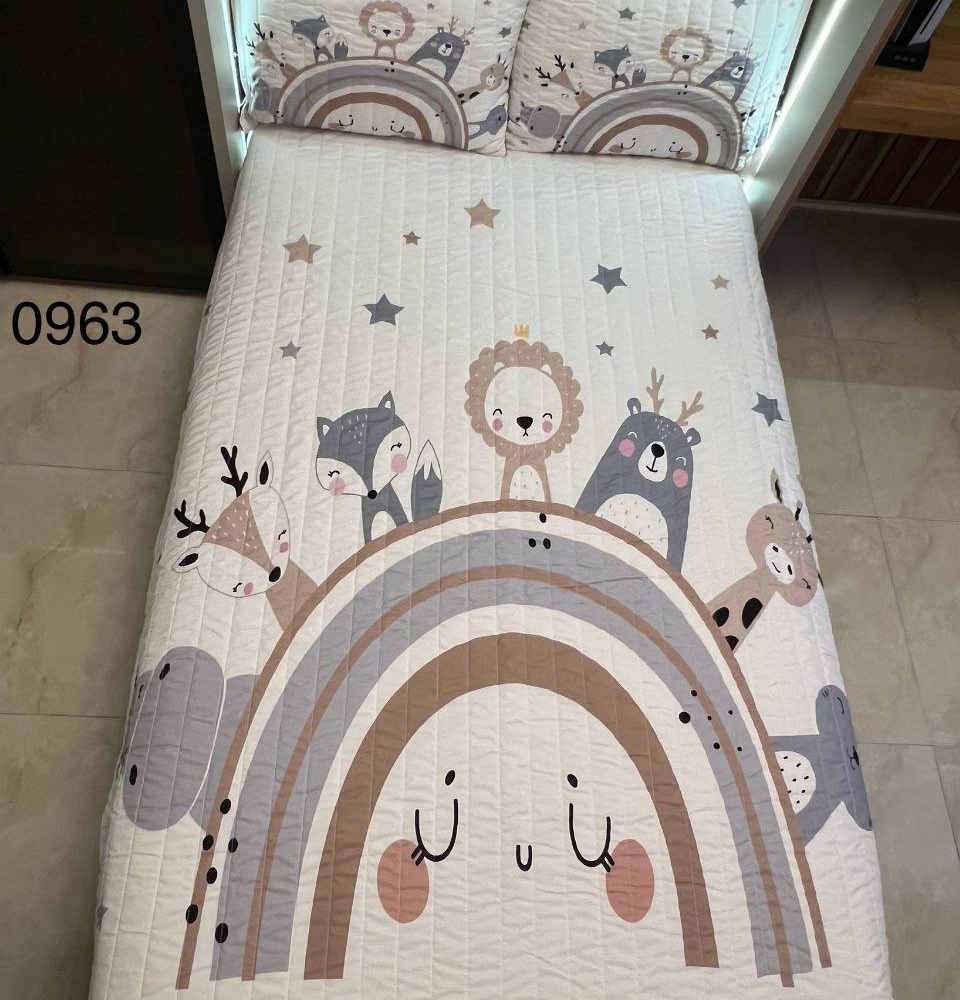 یک طرف کار از پارچه میکرو تنسل , نرم و لطیف و گلدوزی شده است. ملافه کش دار نیز از پشت کار میباشد.
