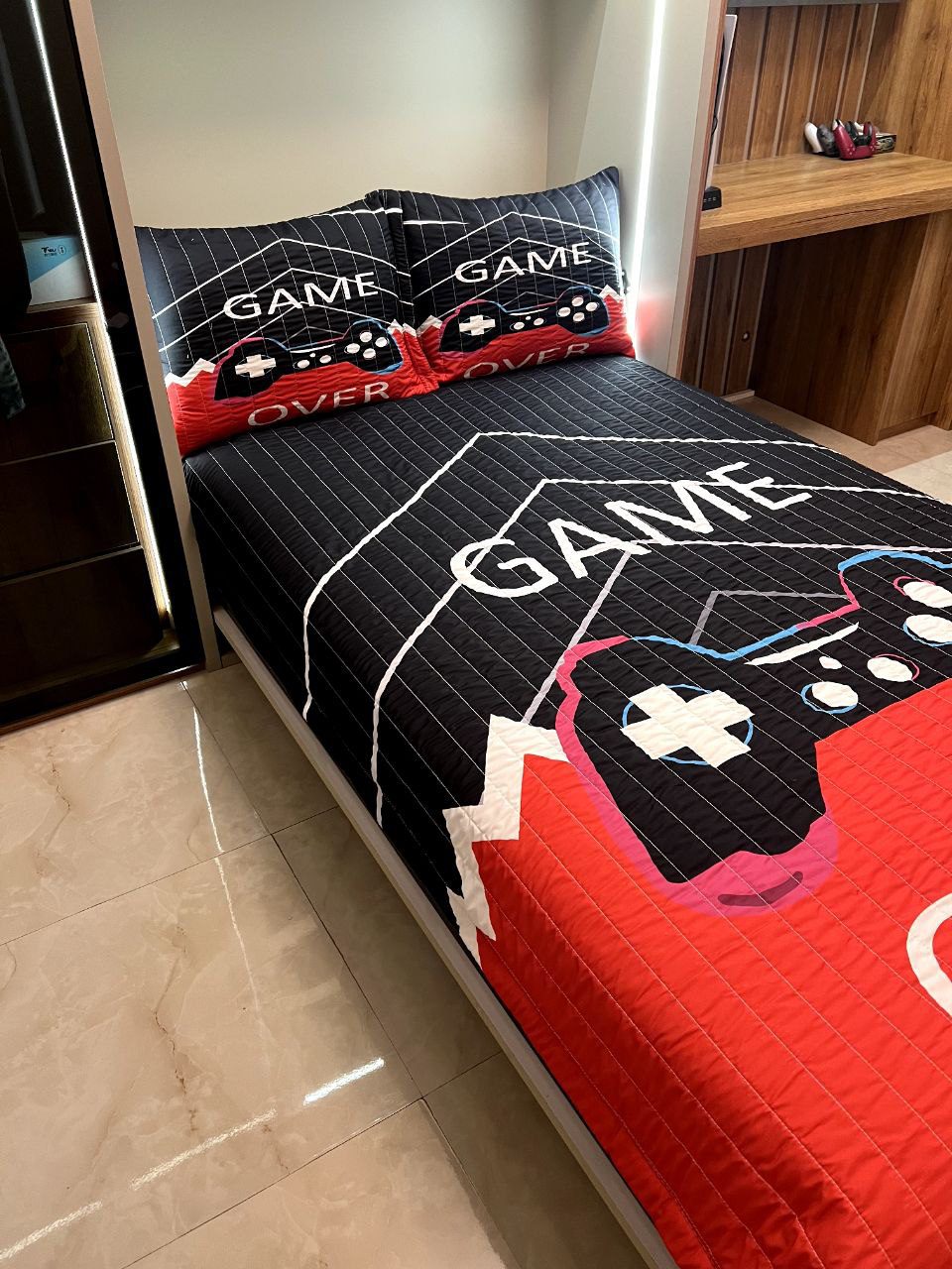 یک طرف کار از پارچه طرح دار اسپرت استفاده شده است. ملافه کش دار نیز از همان سمت ساده میباشد.