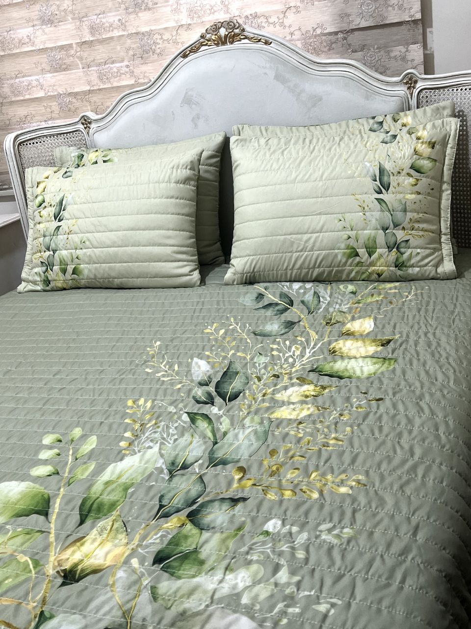 این روتختی شامل : چهار عدد روبالش پنبه دوزی شده با ابعاد استاندارد و یک لحاف دوخت شده با ابعاد 220 در 220 و یک عدد ملافه تشک فری سایز که مناسب همه مدل تشک است , میباشد.(رنگ ملافه سبز پتینه)