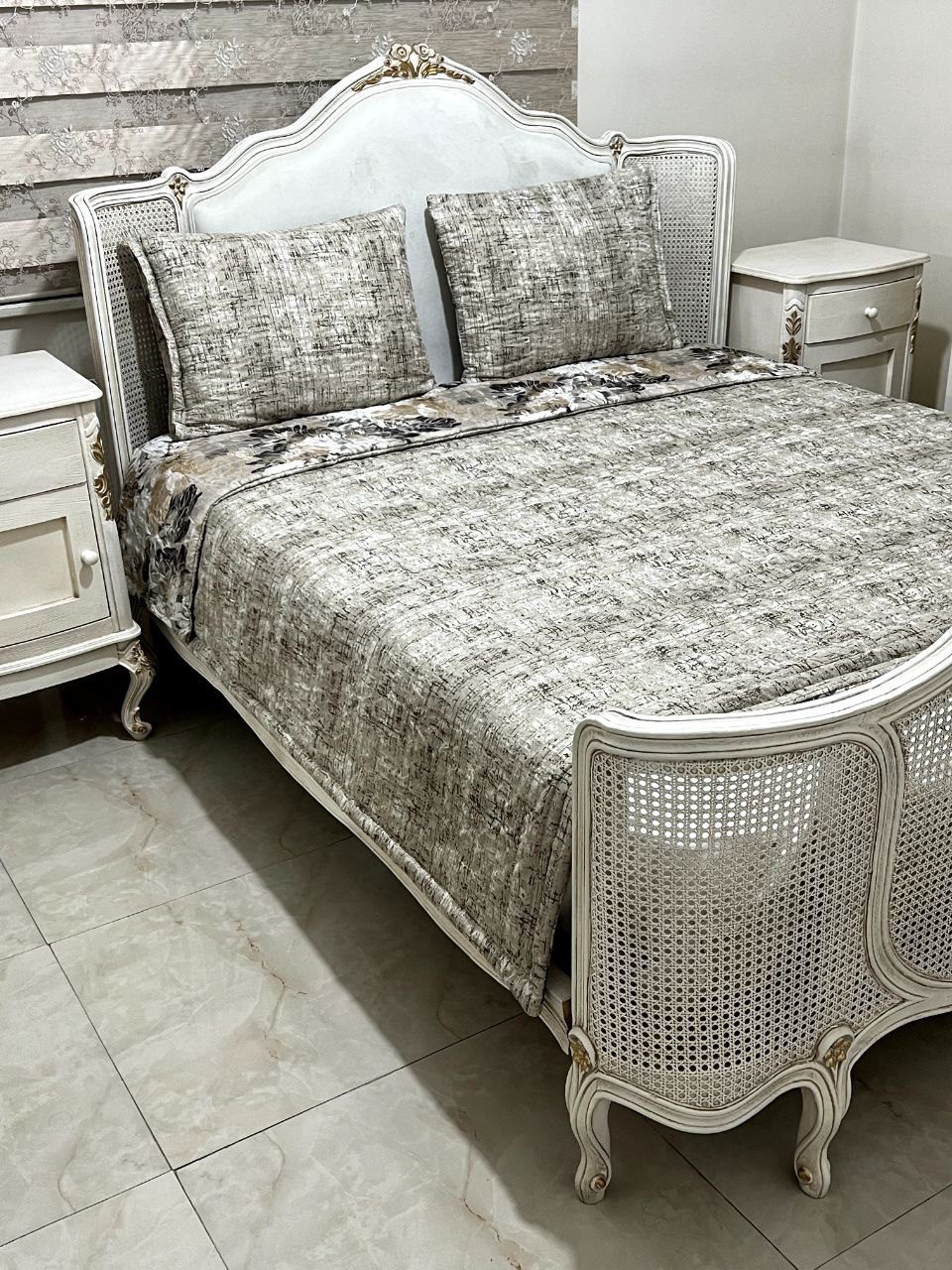 این روتختی شامل : دو عدد روبالش سرزیپ پنبه دوزی شده با ابعاد استاندارد , یک لحاف سبک با ابعاد 220 در 220 .به همراه یک عدد ملافه تشک فری سایز که مناسب همه مدل تشک میباشد.