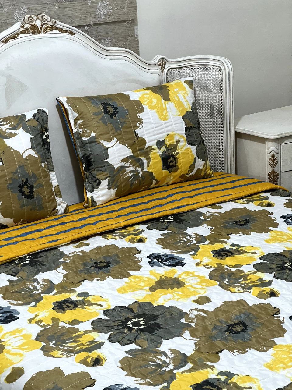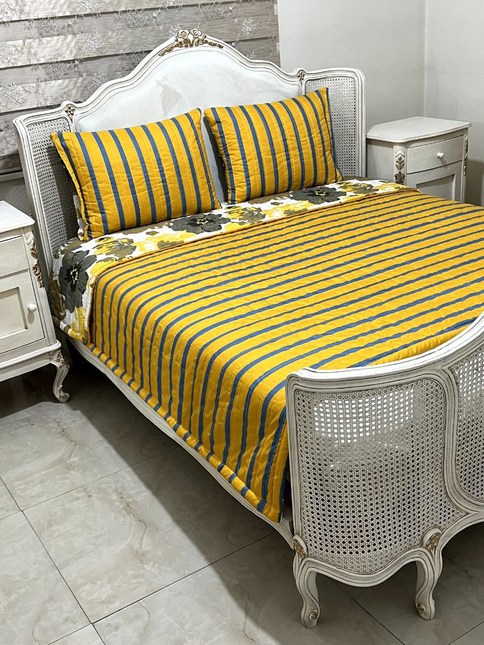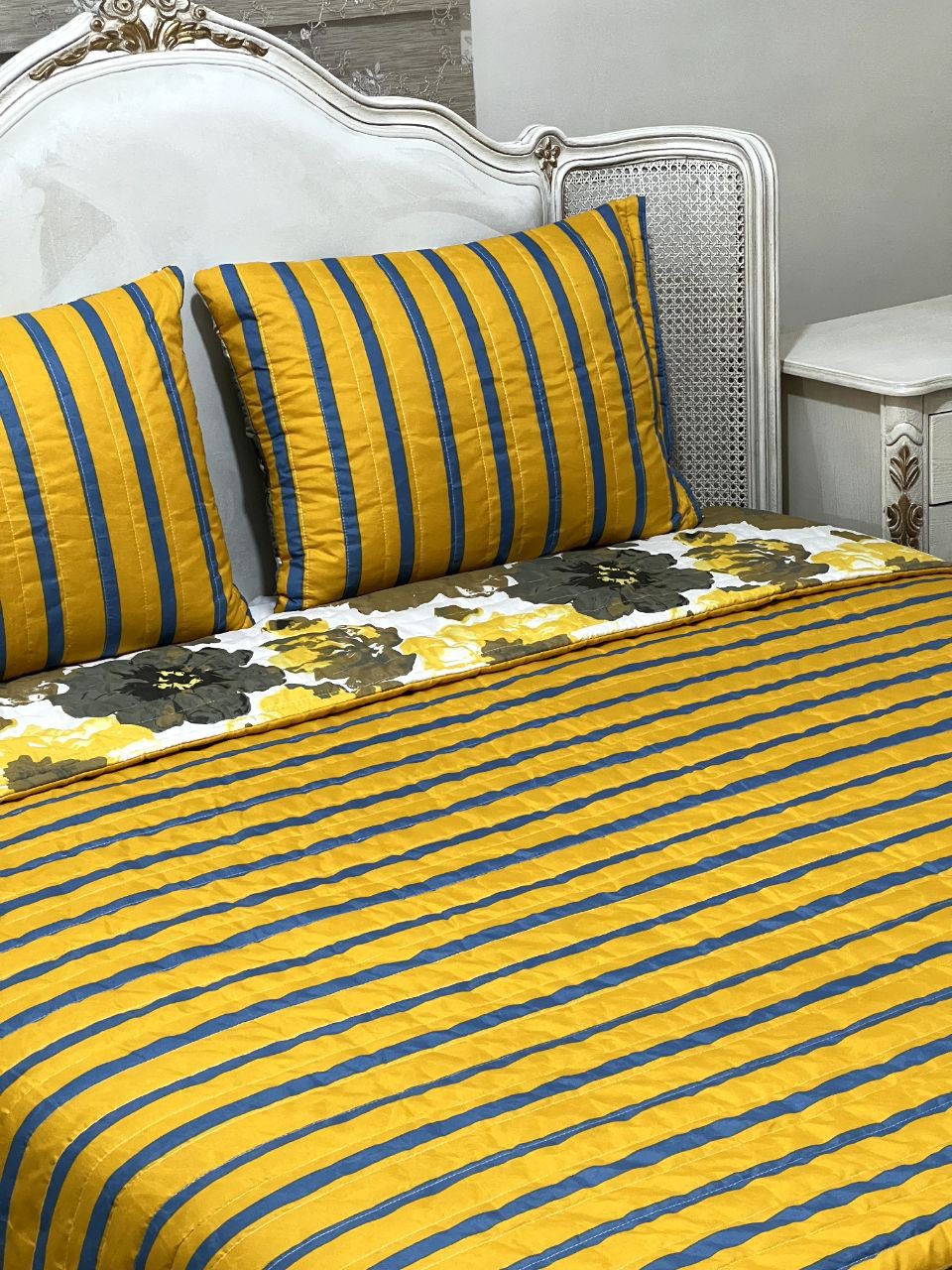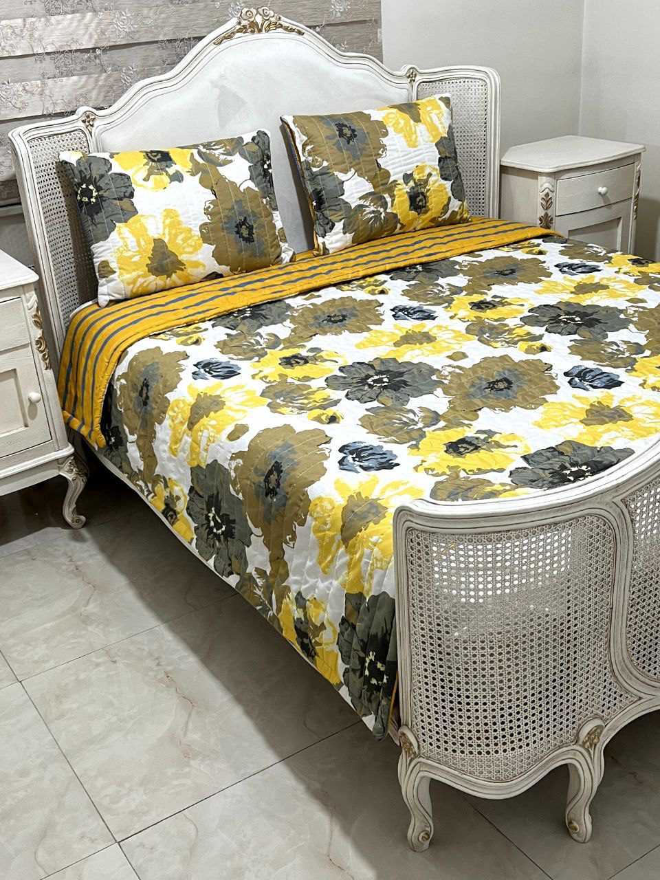 این روتختی شامل : دو عدد روبالش سرزیپ پنبه دوزی شده با ابعاد 50 در 65 , یک لحاف سبک با ابعاد 220 در 220 .به همراه یک عدد ملافه تشک فری سایز که مناسب همه مدل تشک میباشد.