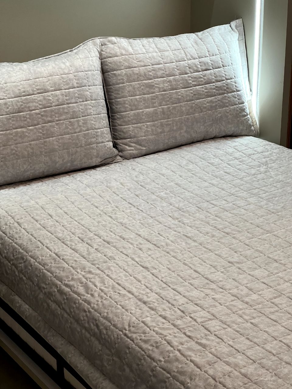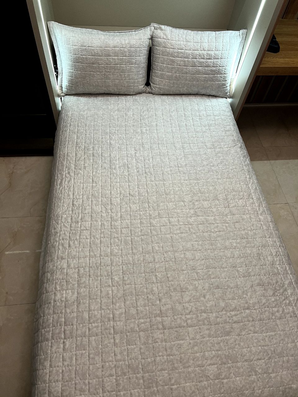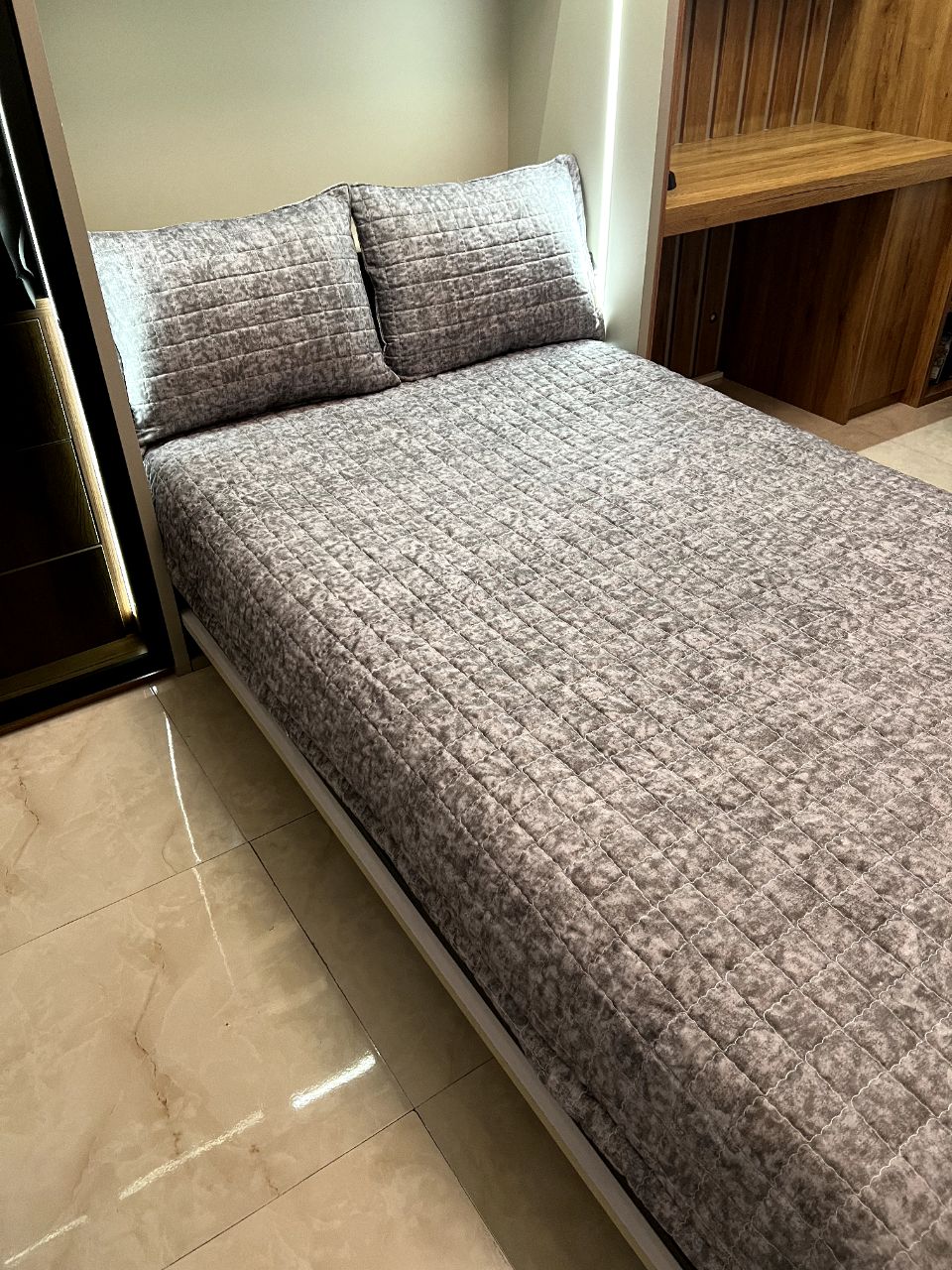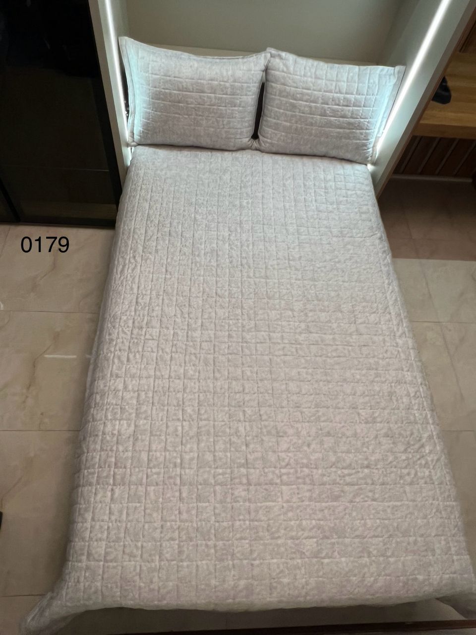 شامل : دو عدد روبالش سرزیپ پنبه دوزی شده با ابعاد 50 در 65 و یک لحاف سبک 160 در 220 .به همراه یک عدد ملافه تشک فری سایز که مناسب همه مدل تشک میباشد.طرح ملافه رندوم از پارچه رویی یا پشتی میباشد.